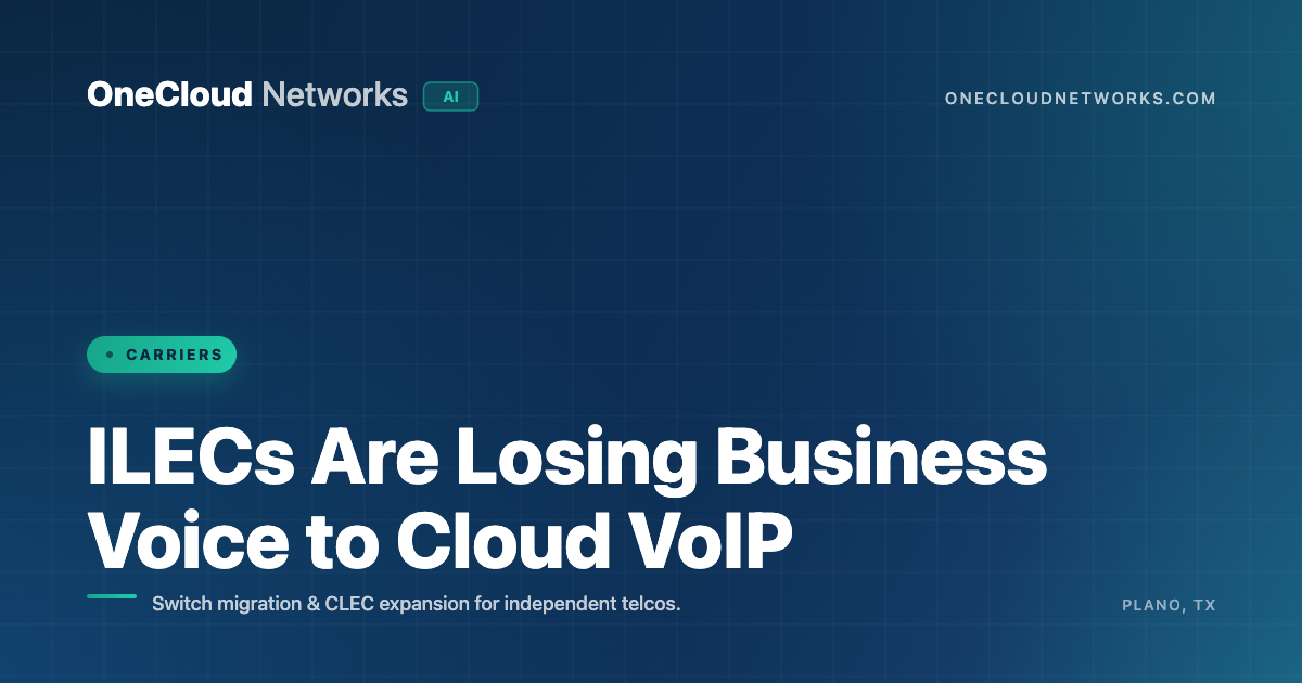 If you run a small ILEC or a regional CLEC, you already know the numbers are moving the wrong way. Business-line counts are shrinking, POTS churn is accelerating, and every time you lose a multi-line business customer you lose not just the dial tone revenue — you lose the long distance, the features, the inside wiring plan, and often the broadband attach. Meanwhile, a growing stack of cloud VoIP providers — RingCentral, Nextiva, 8×8, Dialpad, Zoom Phone, and hundreds of regional operators like OneCloud Networks — are quietly porting your best commercial numbers out of the switch.